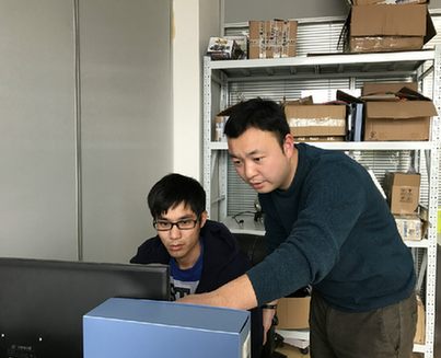 羅全勝(右)在與運(yùn)營人員分析網(wǎng)上銷售業(yè)績。如今,他經(jīng)營的跨境電商與淘寶月營業(yè)額分別高達(dá)12萬美元與120萬元人民幣。