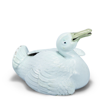 此外,唐英制像生瓷鴨在拍場(chǎng)最終以377.6萬(wàn)港幣成交。唐英在職時(shí),仿生瓷器達(dá)到陶瓷史上最高水平。瓷鴨臥式,造型寫實(shí),全身絨毛均細(xì)致刻畫,工藝極為細(xì)膩,體現(xiàn)出唐英制器的超高工藝水平和藝術(shù)水平。