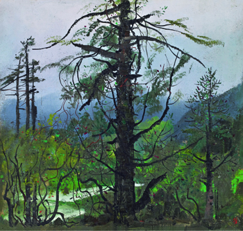 有人說,如果時間讓隱匿的事物顯現(xiàn),吳大羽就是那顆正在被發(fā)現(xiàn)的星。此次推出的《綠韻》,有多次出版和展覽記錄,畫面統(tǒng)攝于一種藍綠的色調,厚重而濃郁,其間黃色與白色的筆觸又使得畫面通透而明亮。薄厚干濕分明的筆觸縱橫捭闔,與中國傳統(tǒng)大寫意的筆墨情趣一樣,形成一種特有的力量感,這也是畫家所講的“勢象”之語。