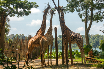 夜幕降臨之際,夜間野生動物園開門迎客。1994年開業(yè)的夜間野生動物園毗鄰新加坡動物園 ,是全球首個展示夜間動物的野生動物園。走進(jìn)“暗無天日”的動物之家,你需要花點(diǎn)時間適應(yīng)黑暗;這之后,眼前就會出現(xiàn)130多個品種的2500多只動物,其中許多是本地土生土長的動物,例如瀕臨滅絕的亞洲象、馬來貘和馬來虎。這些動物生活在35公頃茂密的熱帶雨林之中。小鹿等友善的動物會在夜間動物園內(nèi)自由漫步,花豹等較為兇殘的動物只能待在籠子里。想以車代步游園的話,可搭上全長35分鐘、配有現(xiàn)場解說的觀光電車,帶領(lǐng)游覽全球七大洲,從崎嶇不平的喜馬拉雅山脈到赤道非洲的沼澤地,各具特色。動物園內(nèi)有四條徒步探索小徑,你也可以深入?yún)擦痔诫U,發(fā)現(xiàn)更多電車看不到的動物。