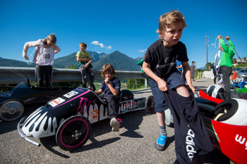 ??? 7月1日,瑞士庫(kù)尼亞斯科舉行肥皂箱車(chē)賽,超過(guò)60名8至16歲的小選手參加了比賽。新華社/歐新 |