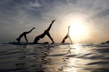 ??? 7月10日,在克羅地亞韋魯代拉,人們在亞得里亞海邊做沖浪板瑜伽。新華社/路透 |