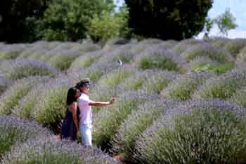??? 7月17日,在土耳其伊斯帕爾塔省的庫尤賈克村,一對情侶在薰衣草花田里拍照。庫尤賈克村是土耳其主要的薰衣草產(chǎn)地,土耳其全年薰衣草產(chǎn)量為747噸,庫尤賈克村占了其中的93%。新華社/歐新 |