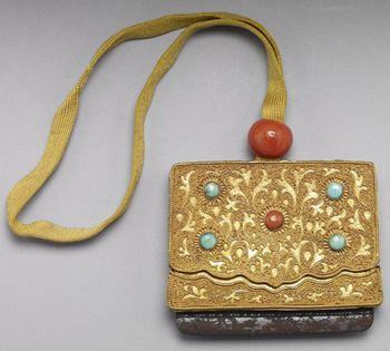 臺北故宮博物院藏 清 鍍金嵌松石珊瑚火鐮盒 長6.5cm |