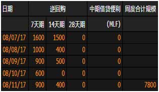 本周央行貨幣政策工具7800億元資金到期。其中包括7天期逆回購5000億元,14天期逆回購2800億元。本周無中期借貸便利(MLF)到期。