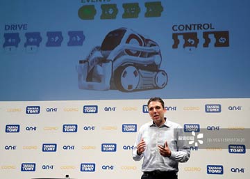 當?shù)貢r間2017年7月11日,日本玩具制造商Tomy在日本東京展示新款機器人玩具Cozmo,Cozmo配備人工智能,帶有臉部識別功能,可以基于不同環(huán)境表達情感。Cozmo將于9月23日在日本開賣。? |