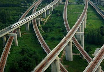 ? 以地處中原的鄭州為中心,鐵軌在大地上寫了一個“米”字,構(gòu)建起覆蓋逾7億人的兩小時高鐵網(wǎng),這樣宏偉的設(shè)想7年前還只是“紙上藍圖”,如今正在加速變?yōu)椤暗厣贤ㄍ尽?。圖為一列動車組列車從鄭州市區(qū)內(nèi)縱橫交錯的高鐵線路中穿過(8月17日攝)。記者 李安 攝 |