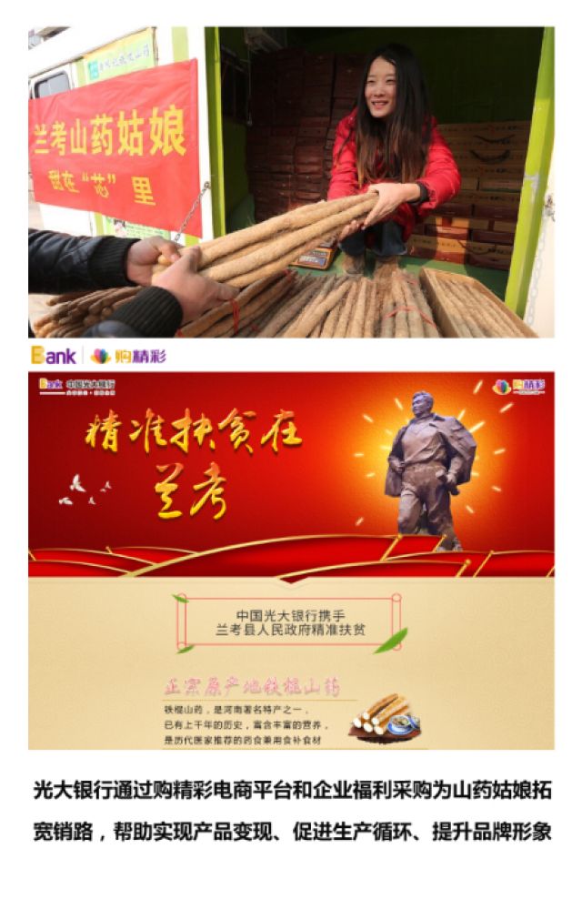 “山藥姑娘”只是貧困地區(qū)眾多返鄉(xiāng)創(chuàng)業(yè)青年的一個縮影,“蘭考模式”也僅是光大銀行電商精準扶貧的模式之一。