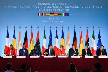 ??? 法國(guó)、德國(guó)、西班牙、意大利、利比亞、尼日爾、乍得等7國(guó)領(lǐng)導(dǎo)人以及歐盟外交與安全政策高級(jí)代表8月28日在巴黎舉行會(huì)晤并發(fā)表共同聲明說(shuō),相關(guān)各方就應(yīng)對(duì)非法移民問(wèn)題達(dá)成多項(xiàng)共識(shí)。記者 陳益宸 攝