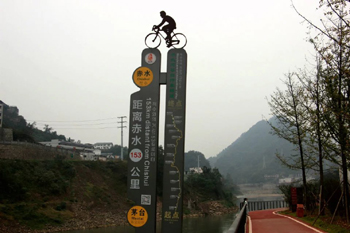 旅游公路的起點(diǎn)茅臺(tái)鎮(zhèn)是紅軍長(zhǎng)征四渡赤水渡口之一。1935年1月至3月,紅軍長(zhǎng)征經(jīng)過(guò)遵義期間,巧妙地在如今的仁懷、習(xí)水、赤水及四川境內(nèi)四渡赤水,甩開(kāi)國(guó)民黨重兵圍困。沿赤水河而下的旅游公路,先后經(jīng)習(xí)水隆興鎮(zhèn)淋灘、土城、赤水元厚等主要渡口。公路沿線還建有四渡赤水紀(jì)念館(土城)、習(xí)水女紅軍紀(jì)念館、土城青杠坡戰(zhàn)斗遺址等紅色景點(diǎn)。在土城街上,每一戶人家都掛著一塊牌子:1935年紅軍駐地。赤水河谷旅游公路共分兩部分,一是公路主線,另一是自行車道、人行步道慢行系統(tǒng)。用紅色瀝青鋪成的山地自行車道,旁邊就是黑色瀝青鋪成的汽車道。到這里旅游可以開(kāi)車、可以騎行、也可以走路,人車分離,既安全又愜意。公路主線全長(zhǎng)約153公里,主線兩邊刺桐樹形成天然樹洞;自行車道、人行步道慢行系統(tǒng)全長(zhǎng)約168公里,與赤水河相輔相成。赤水河谷旅游公路全線上的12個(gè)驛站,目前有500多輛自行車,整體來(lái)說(shuō)車況都還不錯(cuò),綠色的為山地車,后面藍(lán)白相間的為休閑車。在任一驛站都能租賃到自行車,只需拿出手機(jī)用支付寶或者微信掃描自行車上的二維碼,填寫手機(jī)號(hào)機(jī)注冊(cè)一個(gè)賬號(hào),注冊(cè)成功后繳納200元押金即可取走自行車,按小時(shí)收費(fèi),10元/小時(shí)。需要注意的是,每個(gè)人只能使用自己的賬號(hào)租賃一輛自行車。不想騎了,可以隨意在其中一個(gè)驛站把自行車還回去,非常人性化。驛站之中最有意思的為仁懷茅臺(tái)、習(xí)水土城和赤水復(fù)興的3個(gè)驛站,不可錯(cuò)過(guò)。它們沿著赤水河一路前行,先后經(jīng)過(guò)仁懷市茅臺(tái)四渡赤水紀(jì)念碑、 國(guó)酒博物館、茅臺(tái)古鎮(zhèn)、美酒河;習(xí)水縣二郎灘戰(zhàn)斗遺址、四渡赤水紀(jì)念館、千年土城古鎮(zhèn);赤水市赤水大瀑布、燕子巖、竹海等各大景區(qū)。