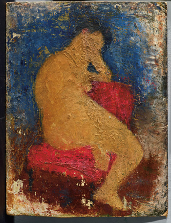 如果說,《窗前裸女》為潘玉良從古人中求我,但不依古人之法,是其對(duì)于東西藝術(shù)精髓上的提煉、吸收與超脫,爽朗而直接地描繪出她心中落落大方的時(shí)代女性?!渡街腥号!穭t是表達(dá)了潘玉良的另一個(gè)創(chuàng)作方向,以一種較為隱晦的方式,傳達(dá)她對(duì)于家庭與親情的渴望。