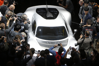 ??? 9月11日,在德國(guó)法蘭克福,來(lái)賓在首發(fā)式上參觀奔馳頂級(jí)超跑AMG Project One。法蘭克福國(guó)際車展于9月14日正式對(duì)公眾開放。新華社/美聯(lián) |