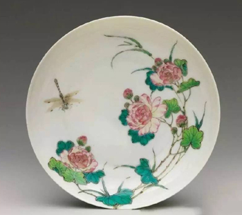 清乾隆 粉彩過(guò)枝秋水芙蓉蜻蜓圖盤 |