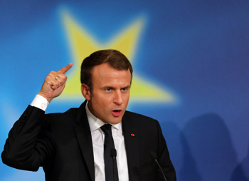 ??? 9月26日,法國(guó)總統(tǒng)馬克龍?jiān)诎屠杷靼畲髮W(xué)發(fā)表演說,提出一系列重塑歐洲的建議主張。馬克龍說,歐洲大陸面臨許多重大挑戰(zhàn),在防務(wù)安全、移民、發(fā)展、氣候變化、數(shù)字革命和全球經(jīng)濟(jì)一體化等方面都需要作出重大調(diào)整。新華社/路透 |