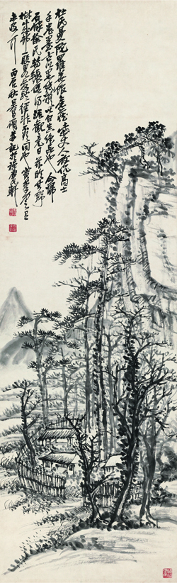 具體來(lái)看,今年上海首拍的近現(xiàn)代書(shū)畫(huà)夜場(chǎng)中,“正道——近現(xiàn)代書(shū)畫(huà)夜場(chǎng)”精心挑選60余件近現(xiàn)代名家扛鼎力作。張大千的《摩詰詩(shī)意圖》、《墨荷圖》,尺幅巨大,且由臺(tái)靜農(nóng)上款。潘天壽《江洲夜泊圖》為潘氏風(fēng)格已臻成熟期的佳作,明豁嚴(yán)實(shí),筆意奔放,超逸空靈而韻味無(wú)窮。徐悲鴻的馬已成為中國(guó)現(xiàn)代美術(shù)史上最經(jīng)典的意象與符號(hào),《秋風(fēng)立馬》、《奔馬》均為其畫(huà)馬成熟時(shí)期的代表作品。齊白石作于1929年的《松鷹》,取縱式構(gòu)圖,具有強(qiáng)烈的氣勢(shì)和無(wú)與倫比的力量感。傅抱石是近代中國(guó)最有創(chuàng)意的藝術(shù)家,以山水畫(huà)成就最高,其中《松澗尋幽》與《聽(tīng)雨圖》,將“抱石皴”的筆法發(fā)揮得淋漓精致。黃胄先生創(chuàng)作于1973年的《馴馬圖》構(gòu)圖獨(dú)具匠心,造型準(zhǔn)確生動(dòng),線條流暢遒勁,筆勢(shì)奔放灑脫。