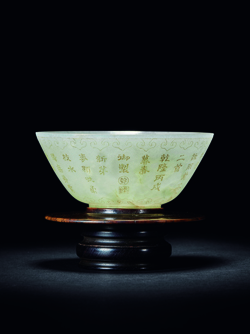 ??? 清代 乾隆御制詩(shī)文描金玉碗(帶古玉椀托) |