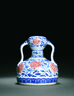 ??? 清雍正青花釉里紅纏枝蓮紋如意耳尊 |