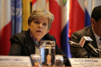 ??? 聯(lián)合國拉丁美洲和加勒比經(jīng)濟(jì)委員會10月30日發(fā)布報(bào)告,預(yù)計(jì)拉美和加勒比地區(qū)今年出口總額將比上年增長10%,其中對中國出口額將比上年增長23%。圖為聯(lián)合國拉丁美洲和加勒比經(jīng)濟(jì)委員會執(zhí)行秘書巴爾塞納在新聞發(fā)布會上講話。記者 王沛 攝 |