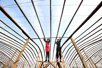 ??? 11月7日,山東省沂源縣東沙溝村的農(nóng)民在搭建蔬菜大棚。當(dāng)日是二十四節(jié)氣中的立冬,各地農(nóng)民搶抓農(nóng)時做好采收、播種、御寒管理等工作,田間地頭一派繁忙。新華社發(fā)(趙東山 攝) |
