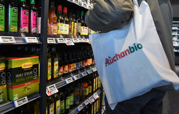 ??? 11月7日,在法國里爾郊區(qū)的Bio超市,一名顧客查看有機(jī)產(chǎn)品。法國歐尚超市集團(tuán)開設(shè)了一家名為“Bio”的超市,售賣的商品全部為有機(jī)產(chǎn)品。新華社/法新 |