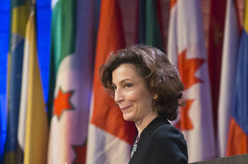 ??? 第39屆聯(lián)合國(guó)教科文組織大會(huì)11月10日在巴黎審議批準(zhǔn)了法國(guó)前文化部長(zhǎng)奧德蕾·阿祖萊出任該組織總干事的提名。現(xiàn)年45歲的阿祖萊將成為教科文組織歷史上第二位女性總干事。新華社/美聯(lián) |