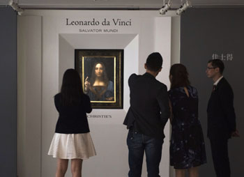 ??? 在香港歷山大廈佳士得藝?yán)?,人們觀看達(dá)·芬奇畫作《救世主》。記者 劉昀 攝 |