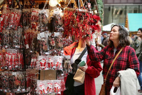 11月28日,人們在美國芝加哥圣誕市場上選購圣誕裝飾。位于芝加哥市中心戴利廣場的圣誕市場每年從11月感恩節(jié)前后到圣誕節(jié)結(jié)束之前開放,是芝加哥最受歡迎的冬季景點之一。記者 汪平 攝