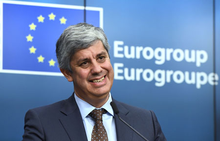 ??? 12月4日,在比利時布魯塞爾,葡萄牙財政部長馬里奧·森特諾出席新聞發(fā)布會。葡萄牙財政部長馬里奧·森特諾在4日的歐元區(qū)財長會上當(dāng)選下一任歐元集團(tuán)主席,將于2018年1月13日就職,任期兩年半。新華社/法新