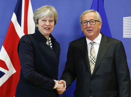 ??? 12月4日,英國首相特雷莎·梅與歐盟委員會主席容克舉行“脫歐午餐”,就英國與愛爾蘭邊界、“分手費”以及歐盟在英公民權(quán)利等議題舉行新一輪談判。記者 葉平凡 攝