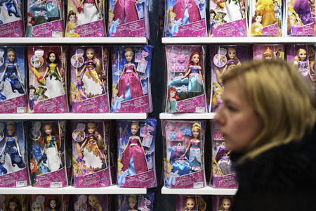 ??? 12月3日,在俄羅斯莫斯科,顧客選購迪士尼玩具。當(dāng)日,首家美國迪士尼玩具專賣店落戶莫斯科市盧比揚(yáng)卡中央兒童商店。新華社/衛(wèi)星社