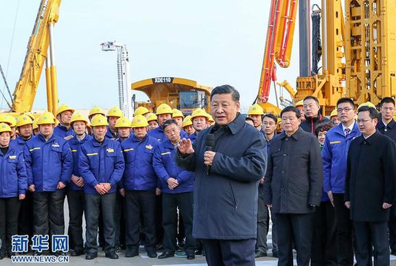 12日,習(xí)近平從北京到達徐州后,首先考察了徐工集團重型機械有限公司。徐工集團的前身始于1943年創(chuàng)建的八路軍魯南第八兵工廠,近年來自主研發(fā)的多種重型機械市場占有率名列前茅,產(chǎn)品銷往世界,同時在國家開發(fā)智能制造、參與軍民融合發(fā)展、參加“一帶一路”建設(shè)等方面取得重要進展。習(xí)近平結(jié)合展板詳細了解企業(yè)經(jīng)營發(fā)展、自主創(chuàng)新、國際合作、人才培養(yǎng)、黨的建設(shè)等情況,肯定企業(yè)繼承紅色基因、適應(yīng)時代發(fā)展取得的成績。他強調(diào),國有企業(yè)是中國特色社會主義的重要物質(zhì)基礎(chǔ)和政治基礎(chǔ),是中國特色社會主義經(jīng)濟的“頂梁柱”。要按照黨的十九大部署推動國有企業(yè)深化改革、提高經(jīng)營管理水平,使國有企業(yè)成為貫徹新發(fā)展理念、全面深化改革的骨干力量,成為我們黨執(zhí)政興國的重要支柱和依靠力量。