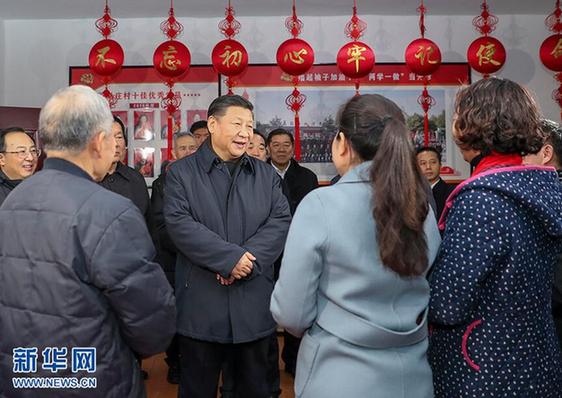 之后,習(xí)近平又來到附近的潘安湖街道馬莊村考察。在村史館,習(xí)近平看圖片、看資料、看實物,肯定該村從單純以煤為生轉(zhuǎn)型到多種產(chǎn)業(yè)共同發(fā)展的經(jīng)驗,指出發(fā)展特色產(chǎn)業(yè)、特色經(jīng)濟是加快推進農(nóng)業(yè)農(nóng)村現(xiàn)代化的重要舉措,要因地制宜抓好謀劃和落實。在黨員活動室,習(xí)近平走進正在學(xué)習(xí)黨的十九大精神的黨員中間,聽他們談學(xué)習(xí)體會,看他們的學(xué)習(xí)筆記,問他們感受最深的是什么、有什么意見和建議,希望他們在學(xué)習(xí)貫徹黨的十九大精神中發(fā)揮積極作用。他指出,農(nóng)村基層黨組織是農(nóng)村各個組織和各項工作的領(lǐng)導(dǎo)核心,要強化農(nóng)村基層黨組織職能,把農(nóng)村基層黨組織建設(shè)成為宣傳黨的主張、貫徹黨的決定、領(lǐng)導(dǎo)基層治理、團結(jié)動員群眾、推動改革發(fā)展的堅強戰(zhàn)斗堡壘。
