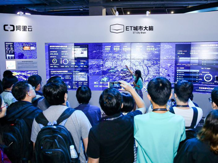 2017年10月,杭州城市大腦1.0正式上線。圖為杭州·云棲大會(huì)上阿里云ET城市大腦展臺(tái)。(資料照片)