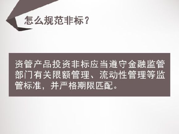 以非標(biāo)準(zhǔn)化債權(quán)類資產(chǎn)投資為例,資管新規(guī)明確了標(biāo)準(zhǔn)化債權(quán)類資產(chǎn)的核心要素,提出期限匹配、限額管理等監(jiān)管措施,引導(dǎo)商業(yè)銀行有序壓縮非標(biāo)存量規(guī)模。