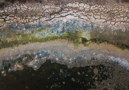 圖為2018年3月30日在江蘇連云港燕尾港鎮(zhèn)化工園區(qū)內(nèi)拍攝的一處水塘,離海一堤之隔的池塘水和岸灘“五顏六色”?! ∮浾摺±铐憽z