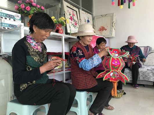 在青海省海西蒙古族藏族自治州烏蘭縣銅普鎮(zhèn)都蘭河村,村民在制作手工藝品。記者 鄧萬里 攝