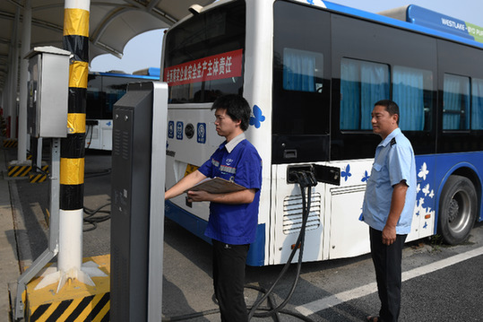 行駛中無(wú)尾氣排放,實(shí)現(xiàn)“零排放、零污染”的純電動(dòng)公交車(chē)已成為杭州的一道亮麗風(fēng)景線(xiàn)。記者 黃宗治 攝