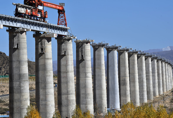 近日,川藏鐵路拉薩至林芝段昌果特大橋開始鋪設(shè)行軌排、架設(shè)梁片,標志著川藏鐵路拉林段正式進入鋪軌階段。記者 覺果 攝