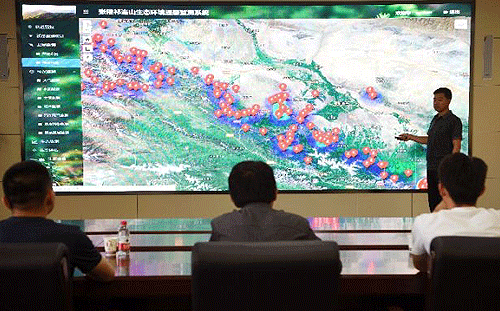 在張掖市環(huán)保局的監(jiān)控大屏上,現(xiàn)在可以調(diào)閱祁連山保護(hù)區(qū)張掖段各整改點(diǎn)位一個(gè)月前的清晰衛(wèi)星照片,與現(xiàn)場(chǎng)整治完成時(shí)的遙感監(jiān)測(cè)數(shù)據(jù)作比對(duì),就可以及時(shí)發(fā)現(xiàn)保護(hù)區(qū)內(nèi)的生態(tài)環(huán)境問(wèn)題。
