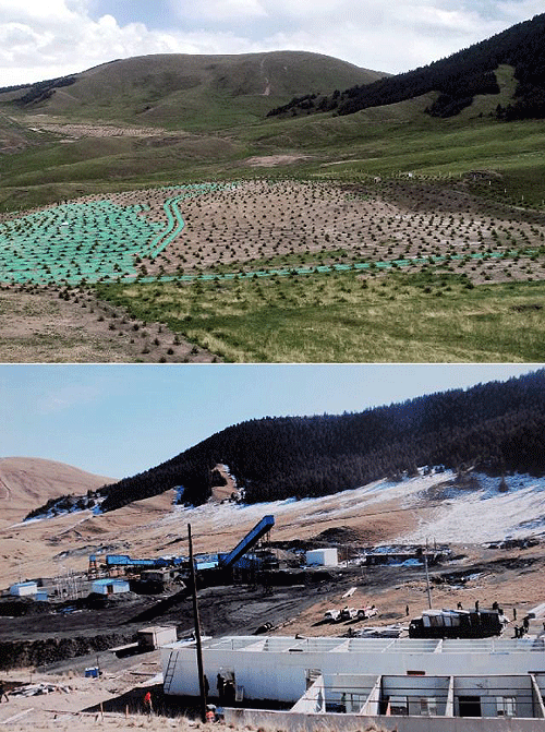 下圖為2017年1月18日拍攝的金昌市永昌縣馬營(yíng)溝煤礦下泉溝礦區(qū)整治前景象(下圖由永昌縣提供)。