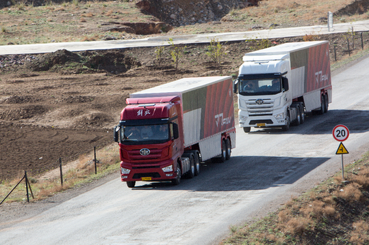 正在進(jìn)行測試的解放牌智能重型卡車。(資料照片)