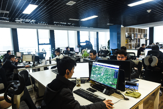 軟件工程師們?cè)谫F州東方世紀(jì)科技公司“東方祥云”平臺(tái)進(jìn)行研發(fā)。記者 陶亮 攝