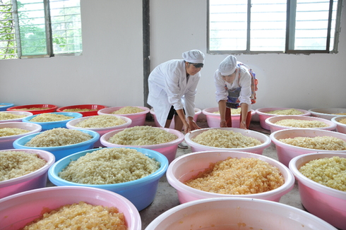 往加工廠里再走幾步,車間里,皂角籽蒸煮、皂角米解凍、烘干、分揀、包裝等工作也在火熱進(jìn)行。主要負(fù)責(zé)皂角米分揀工作的張學(xué)芹,說(shuō)起這份工作,嘴角露出笑容:“挺好的,在家門(mén)口就能就業(yè),一天工作七八個(gè)小時(shí),能有100元的收入。”
