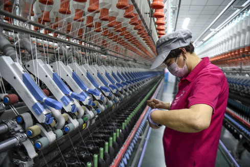 在位于固原市經(jīng)濟(jì)技術(shù)開發(fā)區(qū)的寧夏豐源紡織廠,工人在機(jī)臺(tái)上忙碌。記者 馮開華 攝
