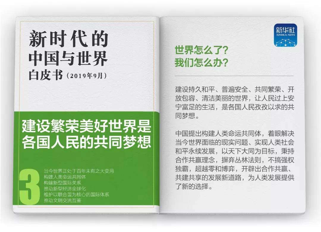 白皮書(shū)最后指出,當(dāng)今世界,各國(guó)的前途命運(yùn)從來(lái)沒(méi)有像現(xiàn)在這樣緊密相連。每個(gè)國(guó)家都和世界的前途命運(yùn)休戚相關(guān),只要目標(biāo)一致、團(tuán)結(jié)起來(lái),共享機(jī)遇、共迎挑戰(zhàn),就能構(gòu)建人類(lèi)命運(yùn)共同體,建設(shè)更加美好的世界,走向更加光明的未來(lái)。
