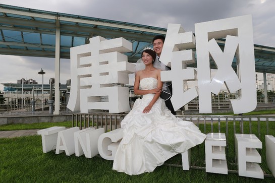 一對(duì)在河北鋼鐵集團(tuán)唐山鋼鐵公司工作的新人在花園般的廠區(qū)拍攝結(jié)婚照。記者 任正來(lái) 攝