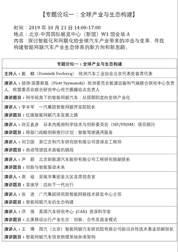 經國務院批準,世界智能網聯(lián)汽車大會(WICV) 將于2019年10月22-25日在北京隆重召開。大會著眼于全球智能網聯(lián)汽車產業(yè)的生態(tài)環(huán)境構建和產業(yè)升級,通過主論壇及專題論壇、院士講堂、開發(fā)者大會、閉門會等多種形式,共同交流探討智能網聯(lián)汽車在技術創(chuàng)新、政策導向、市場模式等領域的成功經驗與發(fā)展趨勢,凝聚產業(yè)共識,明晰政策方向,探索技術路徑。 主辦單位:北京市人民政府、工業(yè)和信息化部、公安部、交通運輸部、中國科學技術協(xié)會 承辦單位:工業(yè)和信息化部裝備工業(yè)發(fā)展中心、北京市經濟和信息化局、中國電子信息產業(yè)發(fā)展研究院、北京市順義區(qū)人民政府、中國國際貿易促進委員會機械行業(yè)分會、中國電工技術學會 時間:2019年10月22日-25日 |