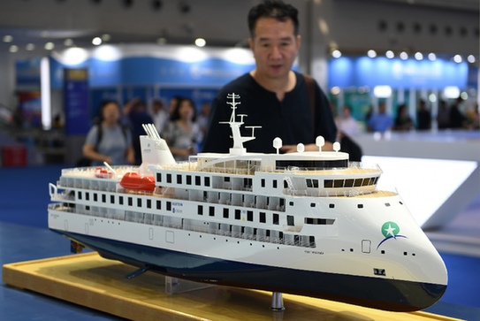 近日,2019中國海洋經(jīng)濟(jì)博覽會在深圳開幕,觀眾在招商局展臺了解首艘國產(chǎn)極地探險郵輪“格雷格·莫蒂默”號。(記者 毛思倩 攝)
