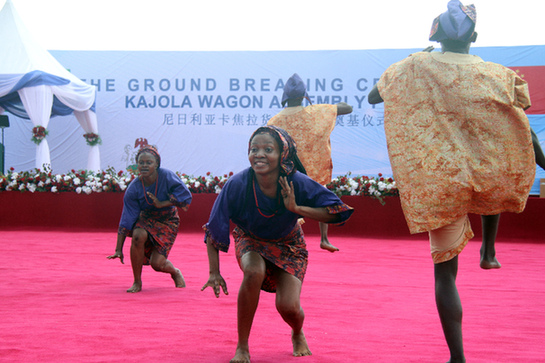 中國土木工程集團有限公司(中土集團)投資建設(shè)的尼日利亞首個鐵路車輛組裝廠9日在尼西南部奧貢州卡焦拉鎮(zhèn)舉行奠基儀式。圖為在尼日利亞奧貢州卡焦拉鎮(zhèn),當(dāng)?shù)匮輪T在奠基儀式上表演傳統(tǒng)舞蹈。