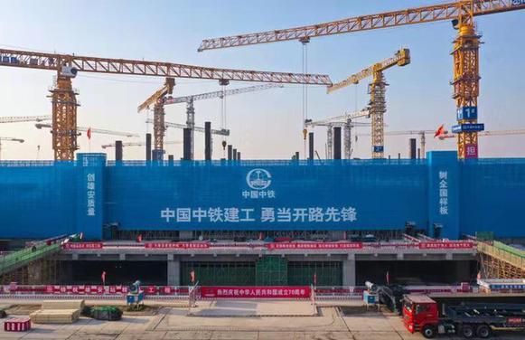 京雄城際鐵路雄安站施工現(xiàn)場。中鐵建工集團供圖